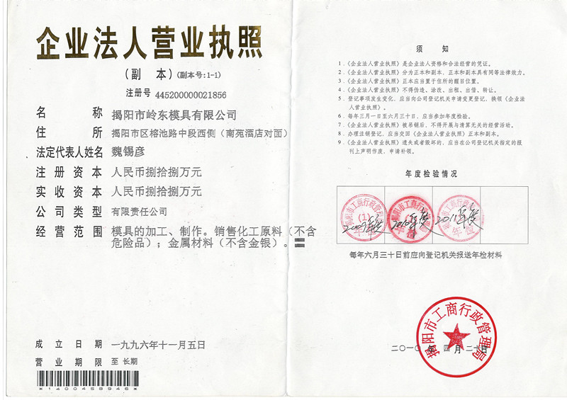揭陽嶺東模具有限公司創建于1986年,歷時20多年穩健發展,廠區占地面積10000平方米,工人技術人員近百人,是一個技術力量雄厚、設備先進、工人經驗豐富的大型民營塑料模具制造企業。公司擁有寬敞明亮的現代化標準廠房及各種先進的加工設備,其中日本哈馬伊加工中心、臺灣進口加工中心、大型龍門銑床及各種立式、臥式數控銑床共30臺,數控車床15臺,數控線切割機、數控電火花成型機、鉆床、磨床及鋸床共計32臺,大小型起重機、航車15臺。自主研發模具生產工藝及模具成型技術,特別對于制造加工大中型日用塑料模具具有極大優勢。